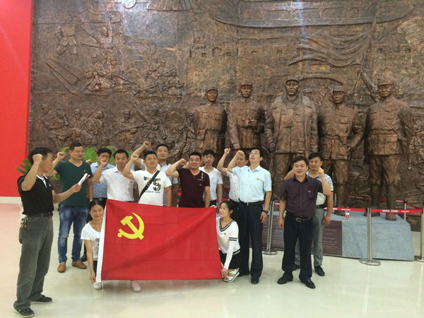 定遠藕塘是中國共產黨領導創建的全國十九塊抗日革命根據地之一淮南抗日民主根據地的中心區,被稱為“小莫斯科”。上午9時30分,參加學習教育的黨員來到革命烈士紀念碑前,向革命先烈默哀致敬,并參觀了革命烈士紀念館,在鮮紅的黨旗下莊嚴宣誓。