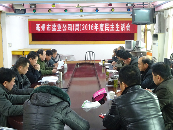 公司黨委副書記榮立華對會議進行了總結發言,他指出,今天的民主生活會,大家直面問題、剖析問題,起到了相互教育、相互提高的效果,展現了良好的黨性觀念和黨性素養,面對鹽業體制改革,我們要沉著應對鹽業面臨的新形勢、新問題,明確整改任務、壓實整改責任,力求取得實效,面對鹽改把亳州鹽業發展好,以昂揚的精神迎接黨的十九大勝利召開。
