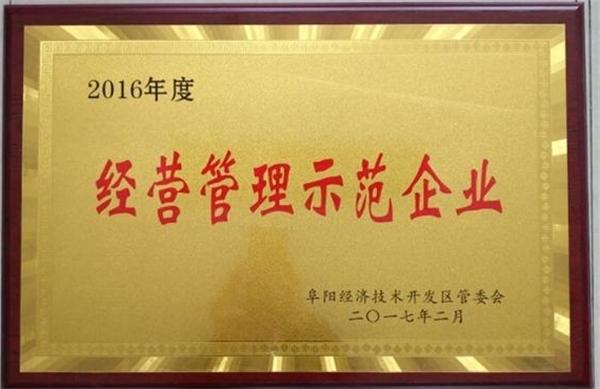 阜陽市公司榮獲阜陽市經濟技術開發區“經營管理示范企業”稱號