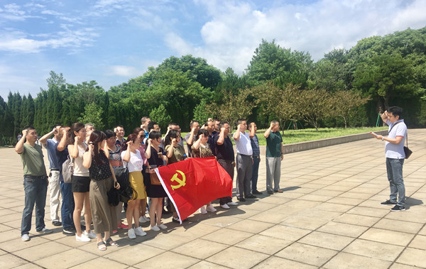 盛夏的獨秀園天高云淡,驕陽似火。在陳獨秀墓前,全體黨員深深三鞠躬;在陳獨秀雕像前,全體黨員向黨旗宣誓,重溫入黨誓詞。陳獨秀,新文化運動的發起人和旗幟,中國文化啟蒙運動的先驅,我黨的創始人及首任總書記,一大至五大黨的最高領袖。在陳獨秀紀念館,黨員們認真觀看了陳獨秀生平事跡展覽,對他波瀾起伏的人生軌跡和革命歷程,以及“一門三中委、兄弟倆英杰”的陳氏一門無比敬佩。大家表示:通過緬懷老一輩革命家為黨所做的豐功偉績,將銘記黨的歷史,堅定理想信念,永葆黨員本色,充分發揮黨員的先鋒模范作用,以實際行動在鹽業體制改革中,為池州鹽業的轉型發展殫精竭慮,盡心盡力。