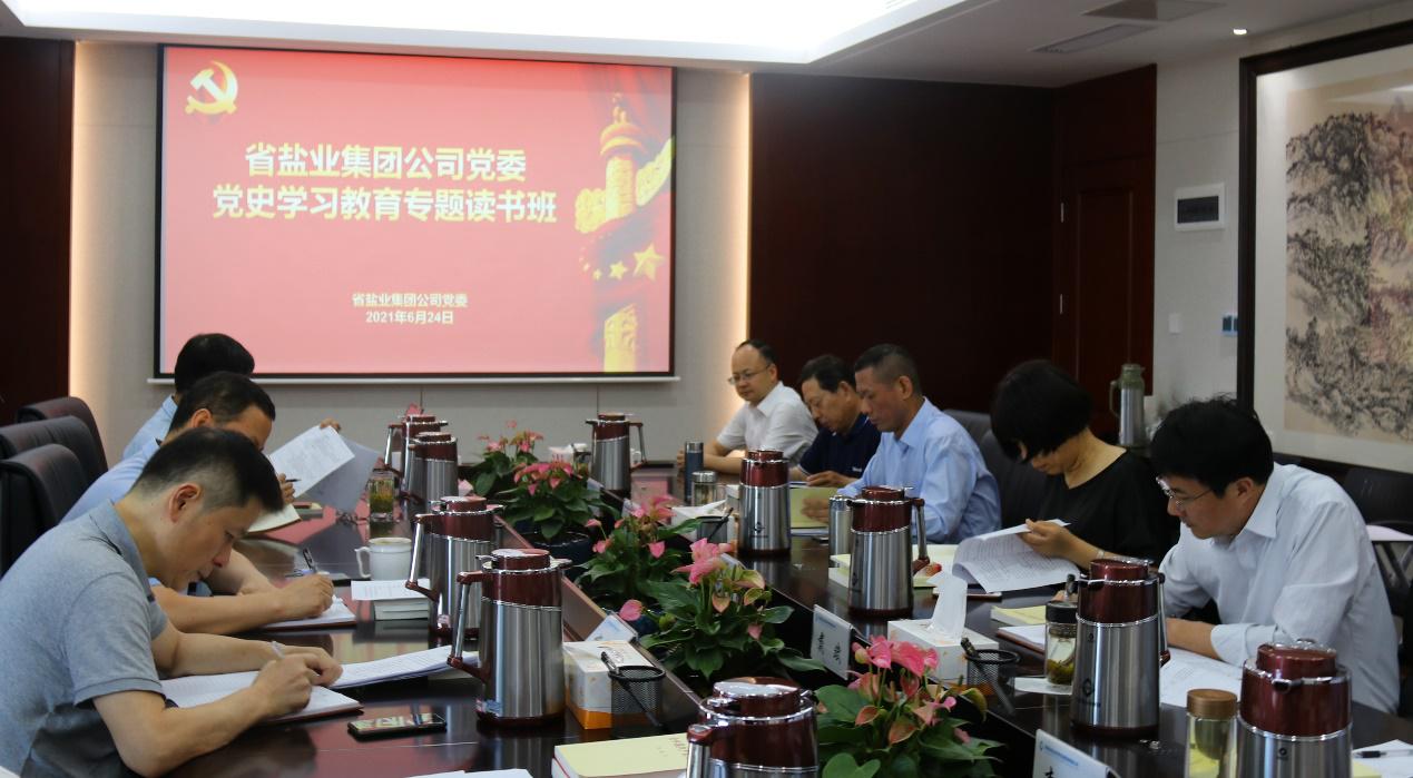 6月24日至25日,省鹽業集團公司黨委舉辦黨史學習教育專題讀書班,采取“專題學習+集體研討”的方式,分4個專題學習黨在新民主主義革命,社會主義革命和建設,改革開放和黨的十八大以來的輝煌奮斗歷程,并圍繞集團轉型發展開展集中研討。集團公司黨委書記、董事長馬占文,黨委副書記、總經理、董事王思軍等黨委理論學習中心組成員參與專題學習,集團本部中層正職以上干部列席。
