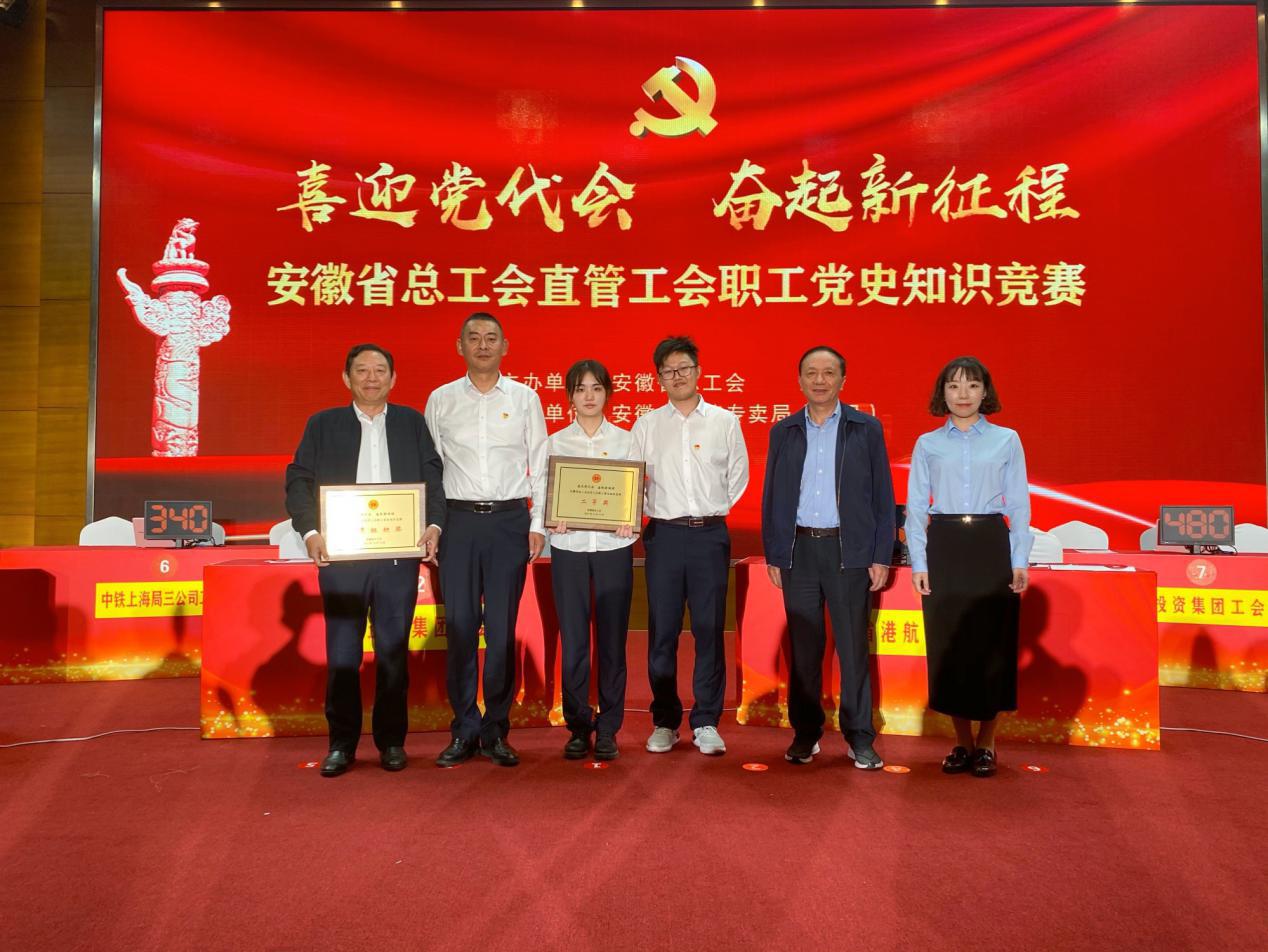10月19日,在安徽省總工會舉辦的省總直管工會“喜迎黨代會 奮起新征程”黨史知識競賽上,由環(huán)境集團(tuán)周俊、順朝公司姚旋、酒店公司吳林組成的省鹽業(yè)集團(tuán)工會代表隊(duì)以第2名的成績榮獲二等獎,集團(tuán)工會獲優(yōu)秀組織獎,充分展示了集團(tuán)公司黨史學(xué)習(xí)教育成果和良好形象風(fēng)采。