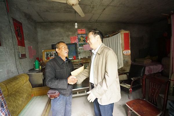 10月10日上午,省鹽務局局長、黨委書記詹先豪一行四人,帶領市鹽務局局長榮立華,黨委書記李文俊,渦陽縣鹽務局局長胡廣東等同志,到渦陽縣楚店鎮李樓村,開展扶貧走訪慰問活動,看望兩戶貧困老黨員,帶去組織的關心和溫暖,同時鼓勵他們樹立信心,戰勝困難,早日脫貧;隨后到村室召開座談會,聽取省鹽務局駐李樓村扶貧工作隊李俠劍同志三年駐村扶貧工作情況匯報。會上,李樓村書記對脫貧進展情況做了詳細介紹,并對省鹽務局給與李樓村脫貧攻堅工作的大力支持表示感謝。