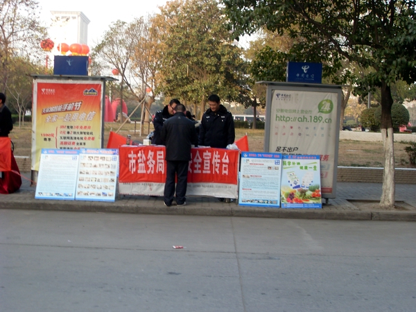 在本次活動中,阜陽市局設(shè)立宣傳咨詢臺,宣傳展架4個(gè),擺放精心準(zhǔn)備的宣傳資料和傳單,展示近期在市場查獲得各類假冒鹽品,現(xiàn)場接受市民咨詢散發(fā)宣傳單300余份,向群眾宣傳普及鹽業(yè)法規(guī),并推出了現(xiàn)場教市民辨別真假碘鹽的活動,咨詢臺前觀看宣傳圖版和前來咨詢的群眾絡(luò)繹不絕,廣大市民對國家為確保民生,食鹽專營的政策深表理解和支持。市領(lǐng)導(dǎo)對宣傳點(diǎn)進(jìn)行慰問檢查時(shí),對阜陽市的鹽政管理給予了充分肯定和認(rèn)可,并鼓勵(lì)大家再接再厲再創(chuàng)佳績。