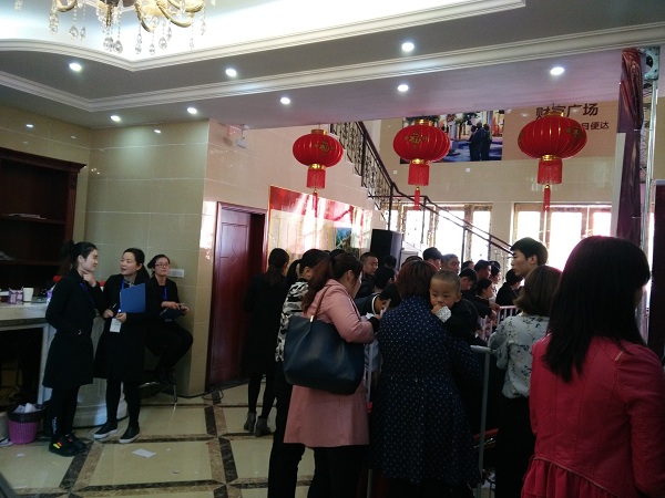 4月1日上午8時許,雖然還不到開盤時間,“徽鹽•錦繡公館”項目售樓中心已是人山人海,不少人在門口排隊領號,更多購房者已在等候區等待開盤選房。