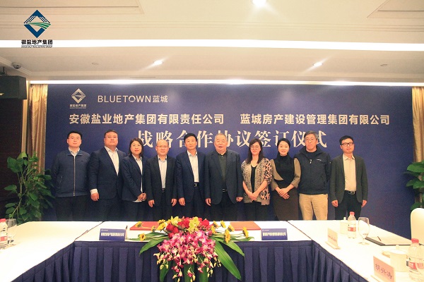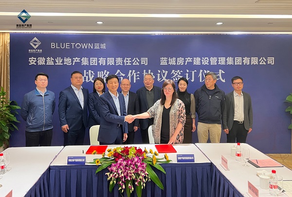 11月2日,徽鹽地產集團與藍城集團戰略合作協議簽約儀式在杭州舉行。徽鹽地產集團負責人吳小平、黨委副書記、董事王晟、工會主席李芳;藍城集團董事長宋衛平,藍城集團副總裁、藍城藍本建設管理有限公司總經理袁鳶,藍城藍本建設管理有限公司副總經理黃曉嵐等出席簽約儀式。
