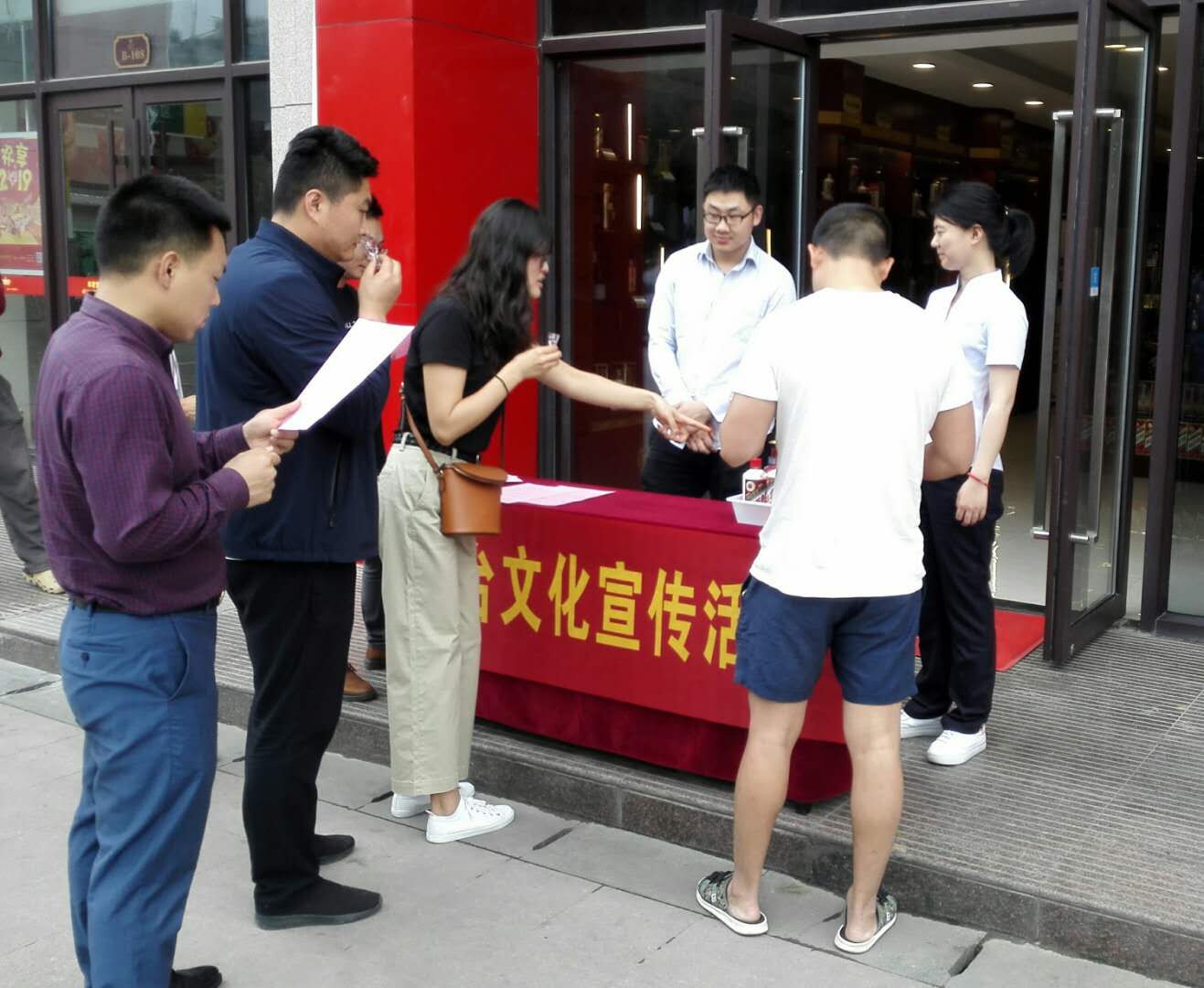 樹立國企公眾形象,提高社會美譽度,我公司于2019年5月16日下午在茅臺酒專賣店店面外開展“茅臺文化宣傳活動”。